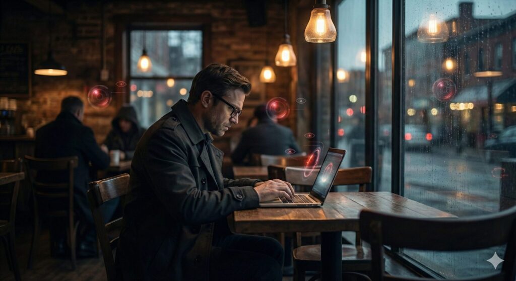 【警告】カフェでPC画面を晒すのは「裸」と同じ。動画視聴も副業もバレない「物理フィルタリング」の極意