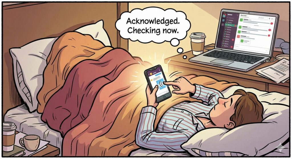 無能な管理職ほど、部下の成果物ではなく「常に連絡がつくか」で安心感を得ようとする。逆に言えば、「即レス」さえできれば、貴様がどこにいようと、何をしていようと、組織の論理では「極めて優秀な社員」とみなされる。