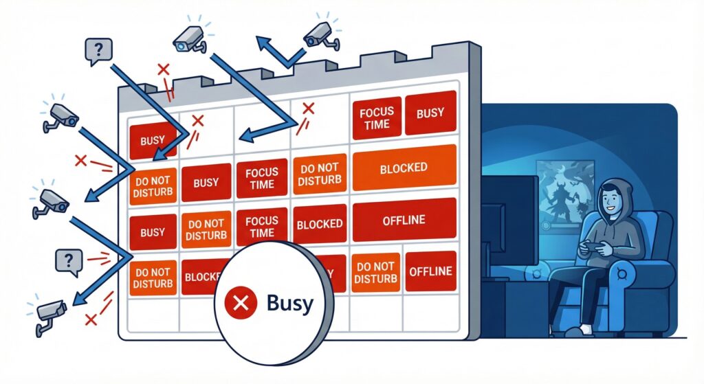 テレワークにおいて、カレンダーの空白は「誰でも自由に時間を奪っていい場所」ではない。貴様が集中して成果を出すための聖域だ。