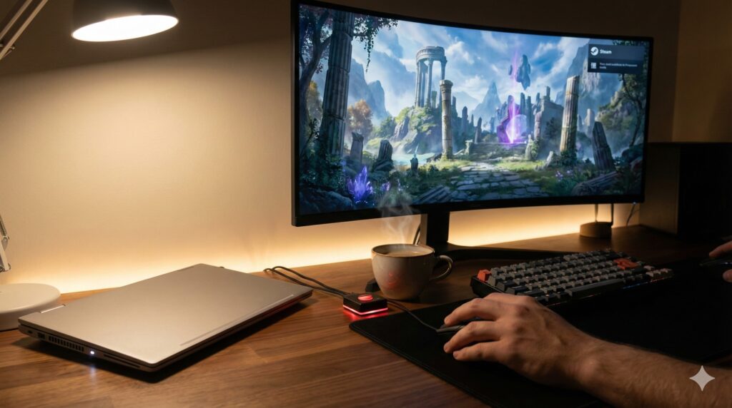 【テレワーク 暇つぶし】スマホは卒業。仕事中に堂々と「Steam」を遊ぶためのデスク構築術